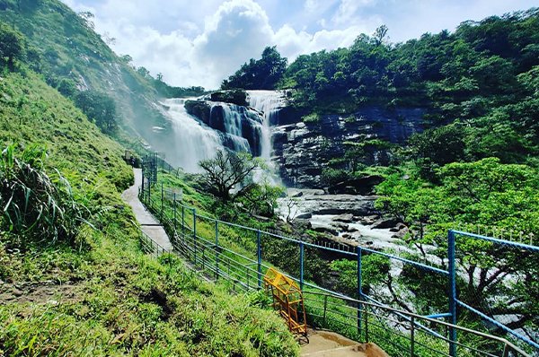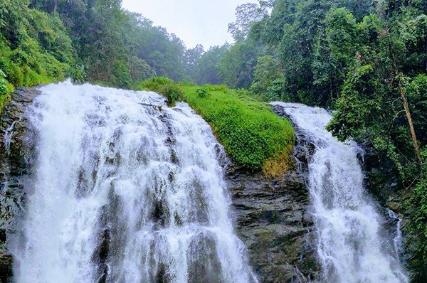 Abbey Falls near Madikeri plunges 70 feet amid coffee estates, spice groves, and lush greenery.